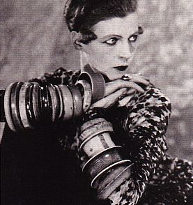 Plastic and metal bangles going all up my arms like Nancy Cunard!