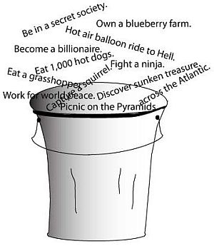 I worked with a woman who liked the movie The Bucket List with an intensity that made me uncomfortable. If the room ever got quiet (I worked in a room with two other people, her being one of them) she would break the silence by saying something like, “Rebecca, what’s on your Bucket List?” I would have to bite back comments like, “Item number one is to say something like, ‘The tribe has spoken,’ and then cut out your tongue,” and make stuff up like, “Bike through Vietnam,” or “Climb that mountain that everyone is always climbing and leaving their trash on top of.”