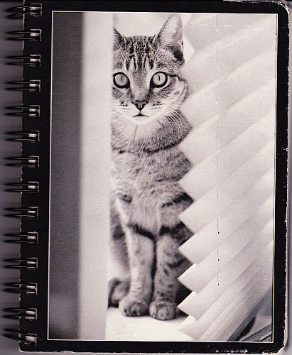 Oh, I almost forgot a very important detail. These notes are in a spiral-bound notebook with a black-and-white photo of a cat on the front. Well, rather than describing it, I’ll show it to you: